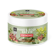 Cremă pentru mâini și corp cu parfum de fistic, ce hrănește și protejează pielea. Îmbogățită cu Aloe Vera, Ulei de măsline și acid hialuronic, combinată cu cătină, lasă pielea catifelată și cu un aspect luminos, fără a lăsa senzație lipicioasă