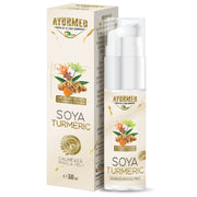 Soya Turmeric Cream este o cremă ayurvedică care calmează și protejează pielea. Formula sa cu extracte din plante recunoscute pentru proprietățile antiseptice, antibacteriene și antiinflamatoare ajută la reducerea iritațiilor, eczemelor și dermatitelor. Bogată în antioxidanți, stimulează regenerarea pielii, uniformizează tonul și protejează împotriva razelor UV, oferind un aspect sănătos și catifelat.
