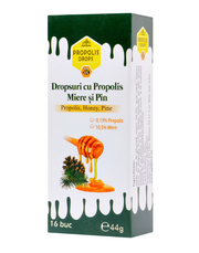 zahăr, sirop de glucoză, miere 10,5%, acid citric, extract uscat de propolis 0,13%, aromă naturală de pin, arome naturale.