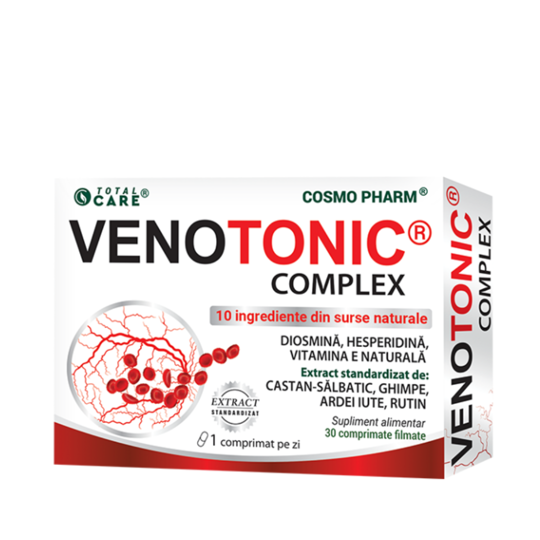 Venotonic Complex este un supliment pe bază de extracte vegetale și antioxidanți, creat pentru a susține circulația venoasă și limfatică. Formula reunește ingrediente cunoscute pentru rolul lor în menținerea tonusului venos, reducerea senzației de picioare grele și sprijinirea confortului circulator.