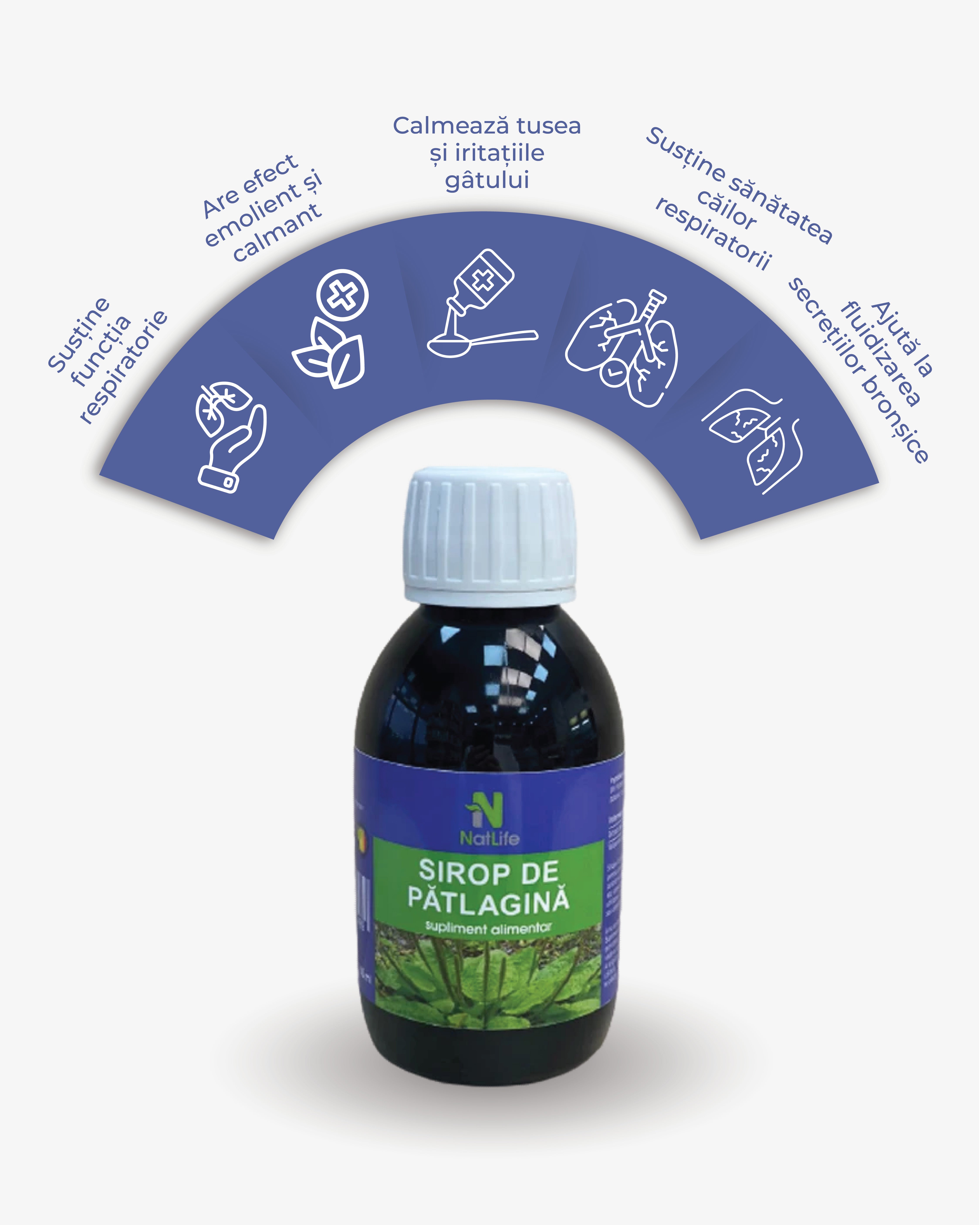 Siropul de Pătlagină Natlife este realizat din extract standardizat de pătlagină (Plantago lanceolata), plantă cunoscută și apreciată de secole pentru proprietățile sale benefice asupra căilor respiratorii.