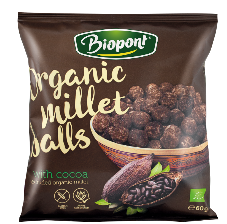 Bilute bio din mei cu cacao Biopont – gustări sănătoase și delicioase, bogate în fibre, proteine și magneziu. Îndulcite natural cu sirop de agave, sățioase și ușor de digerat, potrivite pentru vegetarieni, vegani și persoanele sensibile la gluten.