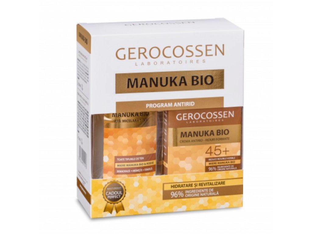 - Cremă antirid 45+ Manuka Bio, 50 ml – Se aplică pe fața curată și se masează până la completa absorbție.