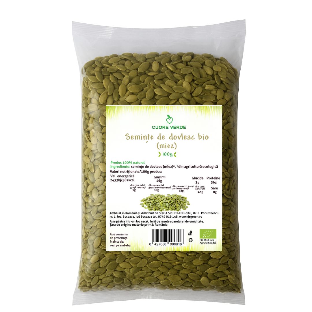 Semințe bio dovleac (miez) romanești 100g Cuore Verde